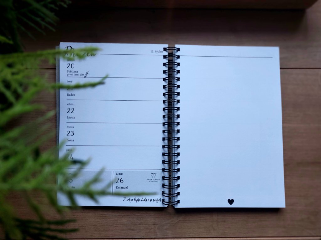 Tento diář jsem vytvořila srdcem, protože vím, jak důležité je mít něco, co vás každý den podpoří a bude s vámi při všech vašich plánech. Navíc je celý vyrobený v České republice, a tak podporuje i lokální produkci.